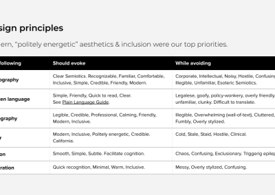 Plain Language: minutes to craft, weeks to push through the machine. User testing ride-alongs & knowing who to invite, essential to overcome. For the Voter Registration component of this project we worked in close partnership with the Center for Civic Design (CCD) , whom California’s Secretary of State had previously retained for this project. Core to CCD’s practice is the evangelism of plain language. It’s a concept that may seem simple and obvious to designers, but is often a significant challenge on government projects.