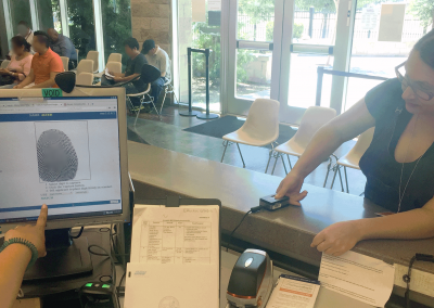 All field offices have an exam area set aside for customers to take Knowledge Exams. These were also used to offer customers privacy with Voter Registration. Having a tablet device at the counter for customer/agent interaction was explored, and will be implemented at a later date—but in and of itself, is a major hardware lift for DMV IT. Planning the customer workflow around the physical separation was not ideal, but—baby steps.